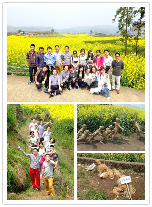 With the shiny and warm Sun, all members feft exciting and happy on the way to the destination, which took half and one hour from Younger Stadium to Sangzhou. While the simple and unadorned canola flowers all over the hills and plains catching into view, it was a gold landscape, glutted everyone’s eyes, which pushing them to take out the cameras and phones to make nice photos.